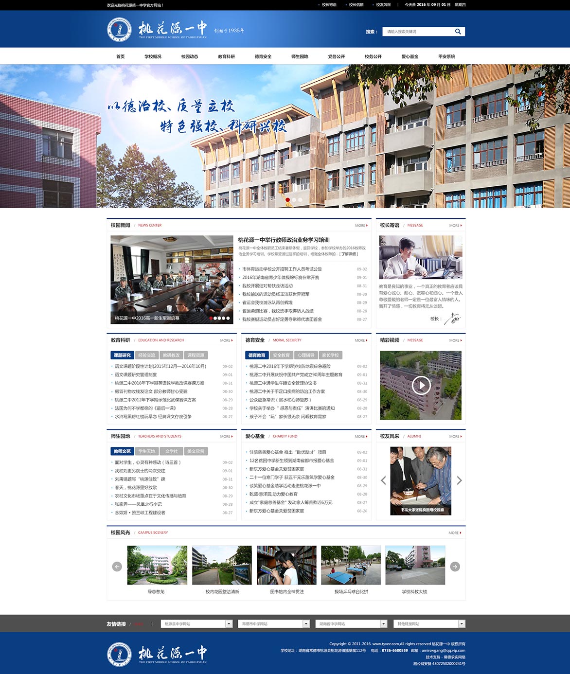 沅水之濱,桃花源里,有一所名冠三湘的學(xué)校。沅水不息,為她注入了不竭的發(fā)展動(dòng)力;屈子行吟,為她增添了濃郁的人文氣息。在這里,亭臺(tái)樓閣匠心獨(dú)運(yùn),小橋流水相得益彰,古樹名花錯(cuò)落有致,花馥書香交洽融匯——這就是被譽(yù)為“桃花源里一奇葩”的桃花源一中。