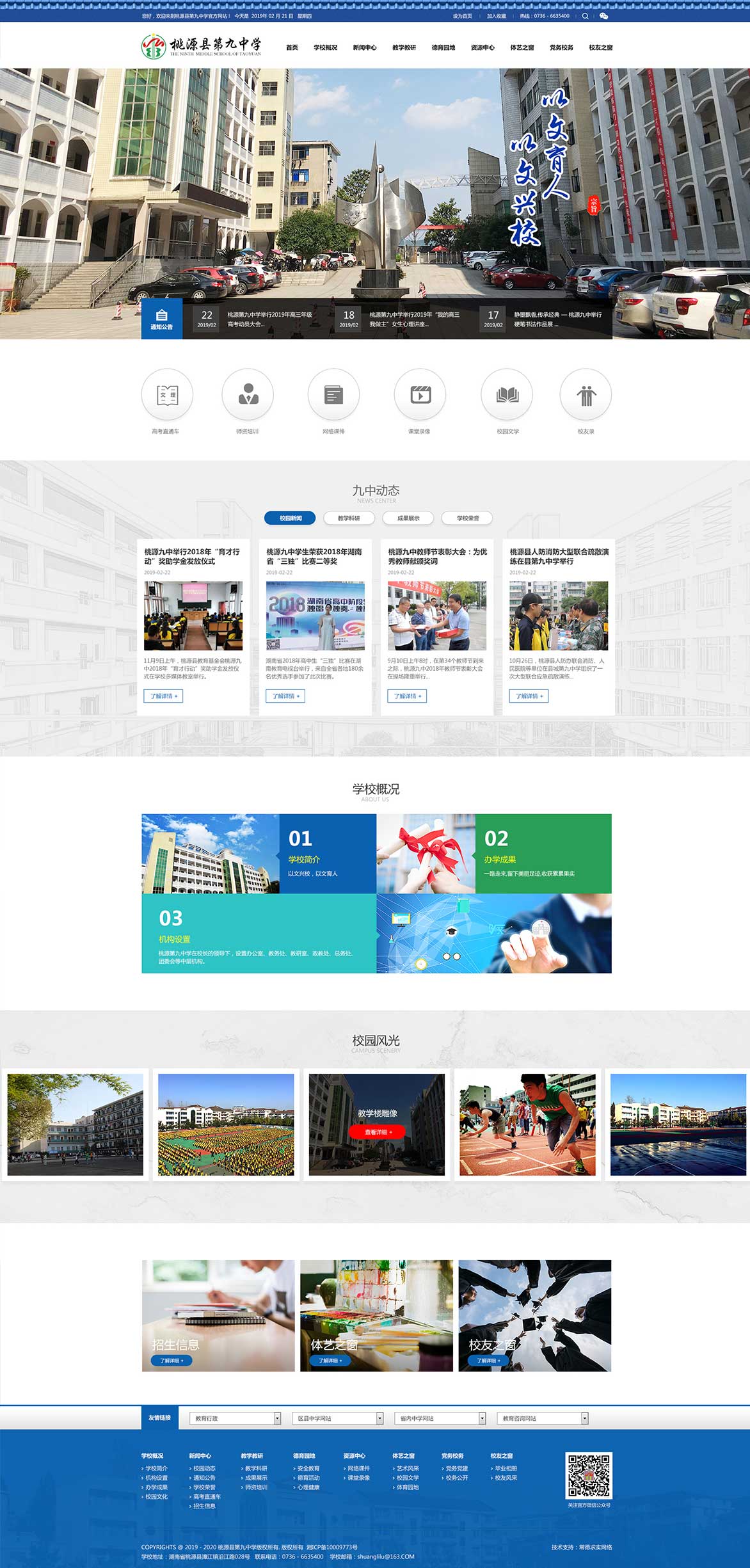 桃源縣第九中學坐落在桃源縣城漳江鎮(zhèn)沅水之濱,創(chuàng)建于1982年,前身為桃源縣城關(guān)中學,1999年晉升為市級示范性中學?,F(xiàn)有教學班67個,學生3940人,教職工324人。 學校校園面積70余畝,教學樓、電教樓、學生公寓樓、學生食堂等教學生活設(shè)施齊全,儀器室、實驗室、圖書室均達國家二類標準。近年來,投入1000多萬新建了高標準運動場,重修了校門和高三教學樓,辦學條件全面改善,校園環(huán)境更加宜人。
